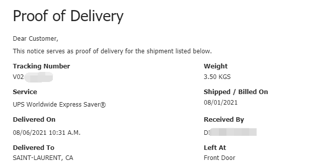 5 days arrive to Canada