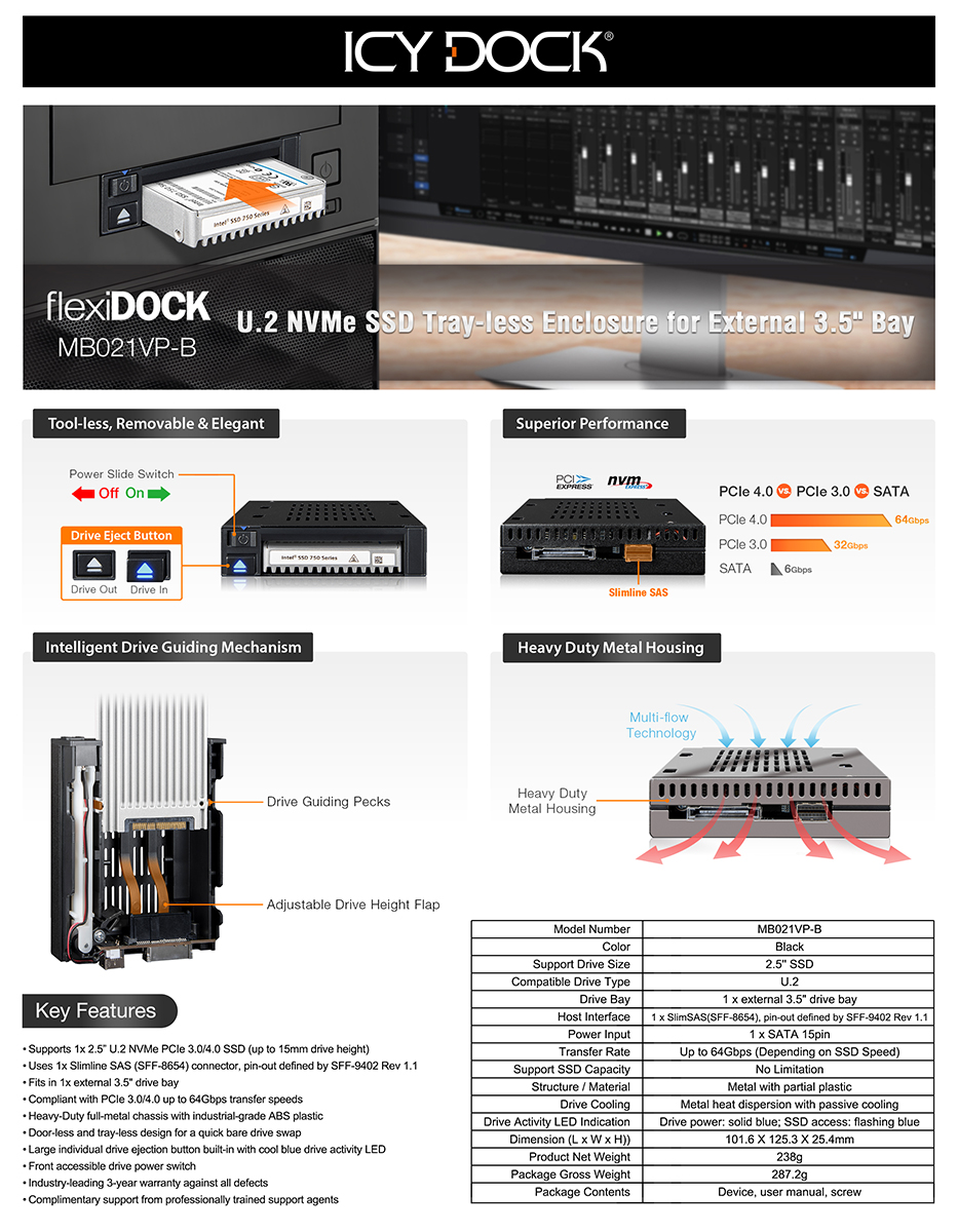 We supply 100% original and brand-new MB021VP-B from ICY DOCK USA only.