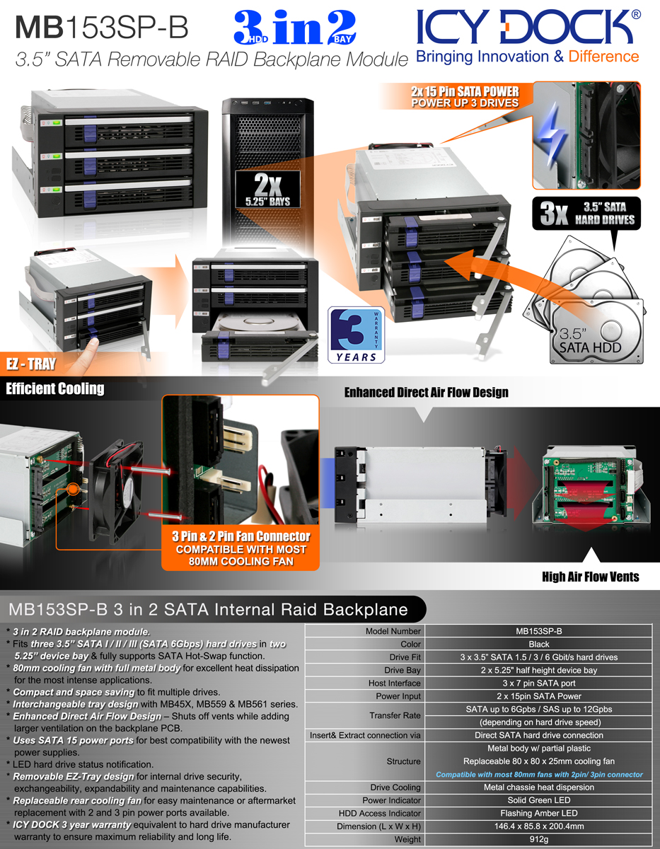 We supply 100% original and brand-new MB153SP-B from ICY DOCK USA only.